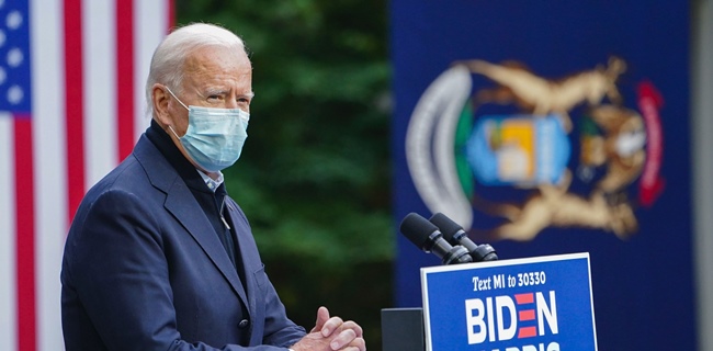 Mengenakan masker dan berdiri di depan bendera Amerika di tempat parkir aula serikat pekerja di Grand Rapids, calon dari Partai Demokrat itu mengatakan bahwa dia dan istrinya, mengirimkan doa untuk kesehatan dan keselamatan Trump dan ibu negara yang juga dinyatakan positif.
