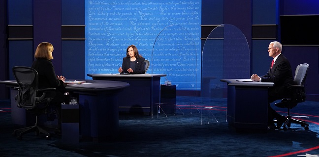 Saat giliran berbicara, Pence menanggapi Harris dengan keberhasilan Trump yang menutup perjalananan dari dan ke China sejak awal.