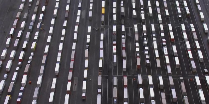 Perdana Menteri Inggris Boris Johnson kemudian memutuskan untuk negubah sebuah landasan pacu di Kent menjadi tempat parkir sementara bagi ribuan truk.