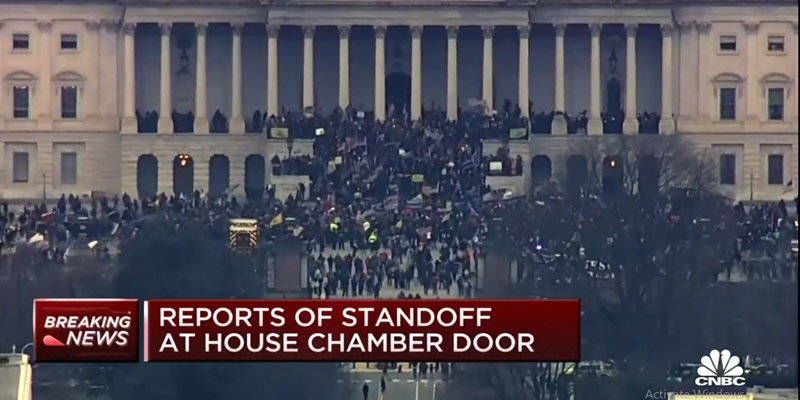 NBC News melaporkan bahwa seorang wanita yang tertembak di dalam Capitol, akhirnya meninggal. Belum diketahui siapa yang menembaknya. Keadaan begitu rusuh dan kacau.