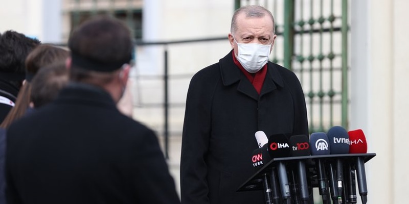 "Menurunnya jumlah korban membuat saya memiliki harapan," kata Erdogan. Menekankan bahwa jajarannya dapat mengatasi perkembangan negatif yang muncul dari varian baru Covid-19.