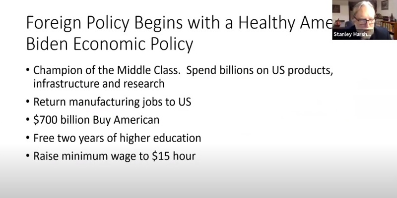 Saat ini kebijakan AS dan internasional akan sangat berbeda akibat pandemik. Stanley memerinci kebijakan yang dilakukan AS di tengah pandemik akan dimulai dengan kebijakan ekonomi Amerika yang sehat ala Biden, seperti janjinya pada saat kampanye.