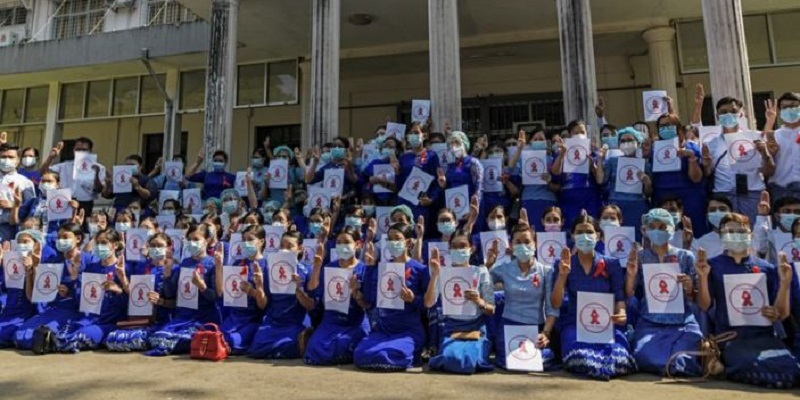 Protes yang dilakukan oleh warga sipil di Myanmar berlangsung sejak kekuasaan direbut oleh militer pada Senin (1/2), di mana pekerja medis melakukan aksi mogok massal. Protes kemudian menyebar dilakukan oleh pelajar, kelompok pemuda, hingga beberapa pekerja sektor negeri dan swasta.