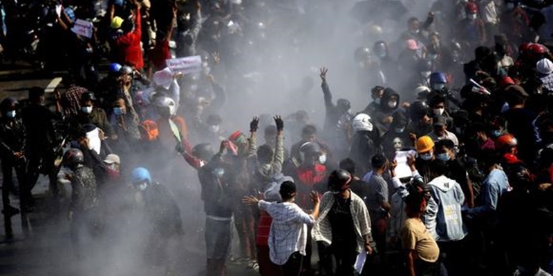 Polisi melakukan tindakan tegas setelah ribuan orang kembali ke jalan, di tengah larangan kerumunan dan aturan jam malam oleh Militer sehari sebelum aksi.