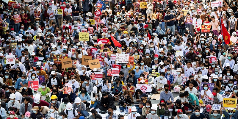Militer mengambi alih kekuasaan setelah menahan pemimpin Aung San Suu Kyi dan para pejabat partai Liga Nasional untuk Demokrasi (NLD). Hal itu dilakukan setelah militer menuding pemilu yang dimenangkan oleh NLD pada November 2020 penuh kecurangan.