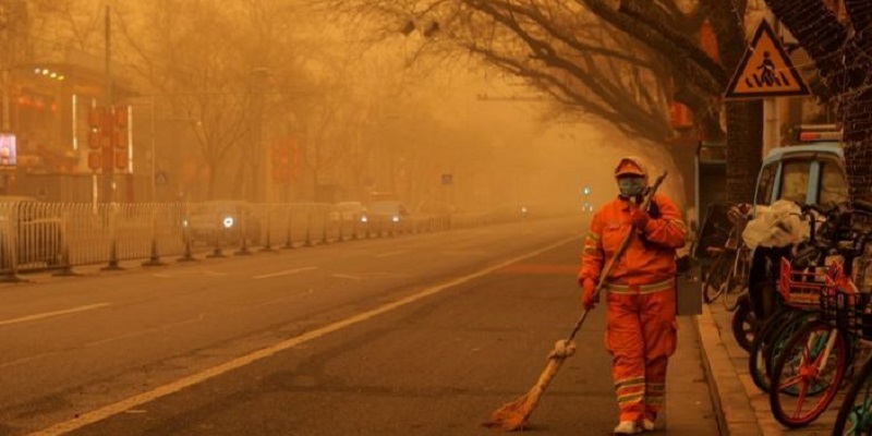 Beijing menghadapi badai pasir biasa pada bulan Maret dan April karena wilayahnya yang dekat dengan gurun besar Gobi serta penggundulan hutan dan erosi tanah di seluruh China utara.