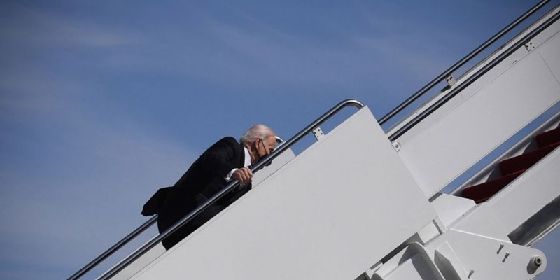 Saat kejadian, Biden menaiki tangga pesawat dengan gaya khasnya, yaitu berlari kecil. Dari video yang beredar nampak presiden tersandung dua kali sebelum akhirnya benar-benar terjatuh. Dia dengan cepat mendapatkan kembali keseimbangannya dan berjalan menaiki tangga sebelum berbalik memberi hormat dan masuk ke dalam pesawat.