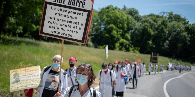 Mengenakan jas medis putih dan masker, mereka kompak berbaris dan berjalan sejauh 2 km untuk menuntut otoritas di semua negara mengakui dan bertindak untuk melawan risiko kesehatan dari perubahan iklim.