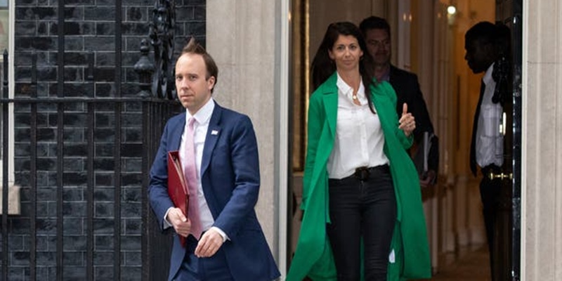 Surat kabar The Sun menerbitkan kamera keamanan yang masih diperoleh dari seorang pelapor yang menunjukkan dia mencium ajudan, Gina Coladangelo, di kantornya pada 6 Mei, yang melanggar aturan tentang jarak sosial.