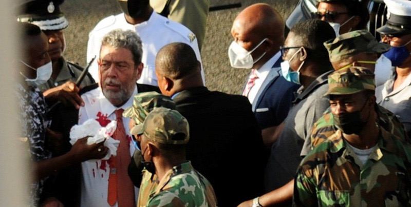 Pada saat itu, Gonsalves sedang berjalan melewati kerumunan pengunjuk rasa di luar parlemen ketika dia dipukul di bagian kepalanya dengan batu pada Kamis (5/8).