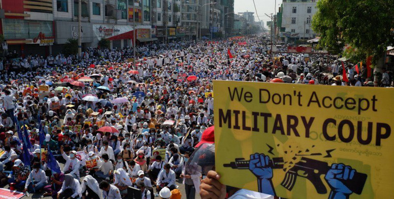 Myanmar berada dalam kekacauan sejak militer mengambil alih kekuasaan dari tangan pemerintah sipil pimpinan Aung San Suu Kyi yang dipilih secara demokratis pada awal Februari lalu. Hal tersebut memicu gelombang protes dan gerakan pembangkangan sipil yang melumpuhkan sebagian negara bagian.