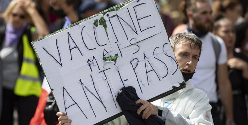 Di Lans-en-Vercors, Prancis tenggara, grafiti anti-vaksin dilukis di pusat vaksinasi. Selang kebakaran juga sengaja dibuka sehingga membanjiri fasilitas tersebut.