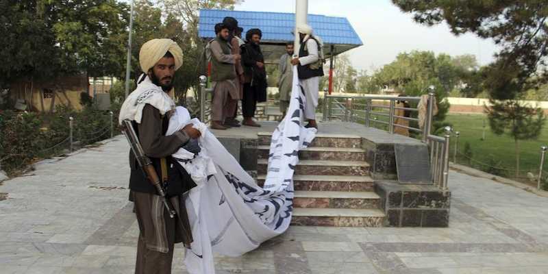 Bendera Afghanistan telah diturunkan dan diganti dengan bendera putih bertuliskan dua kalimat syahadat milik Taliban.