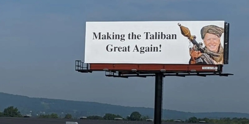 Di Pennsylvania, salah satu bentuk kritik dilakukan dengan memasang billboard atau papan reklame menggambarkan Biden menjadi anggota Taliban dengan slogan "Making the Taliban Great Again!".