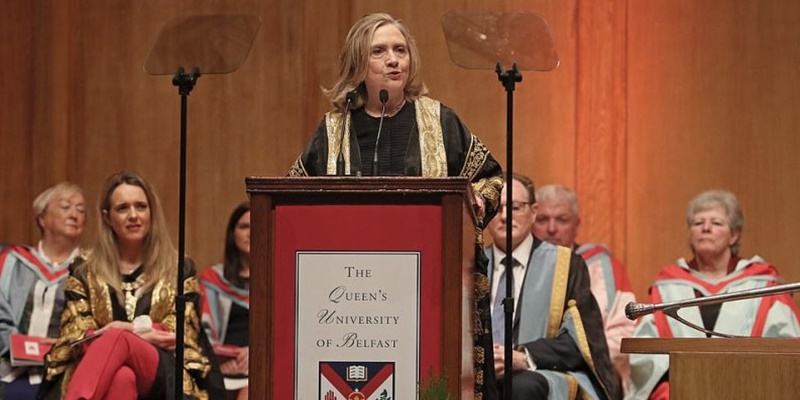 “Kami senang bahwa Sekretaris Clinton telah dapat melakukan perjalanan ke Belfast untuk secara resmi dilantik sebagai rektor 11 universitas,†kata Ian Greer, presiden dan wakil rektor Queen7s. Dia menyebut Clinton pelayan publik yang diakui secara internasional yang telah menunjukkan komitmen lama untuk Irlandia Utara.