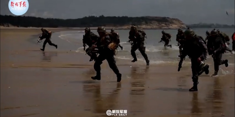 Video yang beredar Senin (11/10) itu dirilis di akun Weibo milik PLA Daily menunjukkan tentara dalam beberapa gelombang berlatih menguasai pantai.