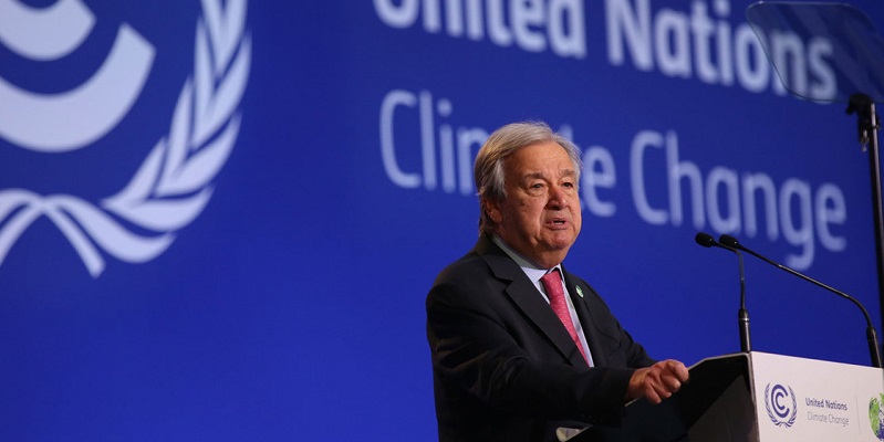 Di hadapan lebih dari 120 pemimpin dunia yang berkumpul di KTT Perubahan Iklim atau COP26 di Glasgow pada Senin (1/11) waktu setempat, Sekretaris Jenderal PBB Antonio Guterres mengatakan efek dari semakin buruknya kondisi planet ini sedang dirasakan dari kedalaman laut hingga puncak gunung.