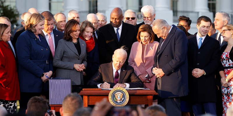 Penandatanganan dilakukan dalam sebuah upacara di Gedung Putih pada Senin (15/11). Tampak Demokrat dan Republik bersedia berdiri berdampingan, merayakan pencapaian bipartisan.