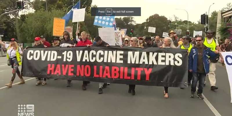 Protes juga terjadi di bagian lain Australia, Sydney. Ribuan pengunjuk rasa berkumpul di Hyde Park sebagai bagian dari "rapat umum kebebasan".