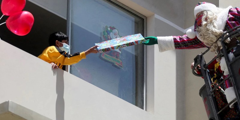 “Karena ini adalah area CCovid, Anda tidak dapat masuk secara langsung, tetapi Santa dan pemadam kebakaran memberikan solusi,†kata Juan Oriundo, direktur Desa Pan American di ibu kota Peru, Lima, seperti dikutip Reuters.