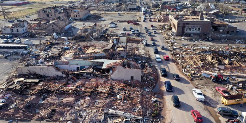 Tornado yang menerjang enam negara bagian pada Senin (13/12) menciptakan kehancuran yang cukup parah.