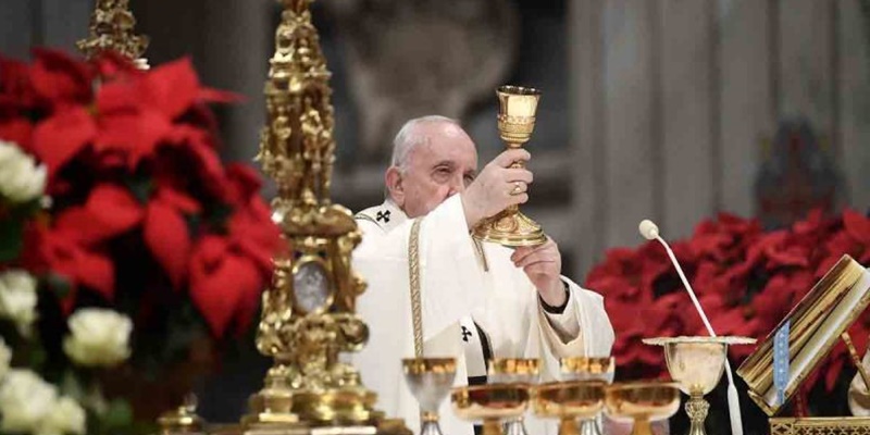 Paus yang tidak mengenakan masker, berjalan menyusuri lorong tengah basilika saat paduan suara Kapel Sistina menyanyikan Noel, memulai liburan Natal yang memperingati kelahiran Yesus di palungan di Betlehem. Acara kebaktian pada Jumat (24/12) tengah malam itu, dibatasi oleh aturan Covid-19, sehingga jumlah jemaah hanya sekitar seperlima dari tahun-tahun sebelum pandemi.