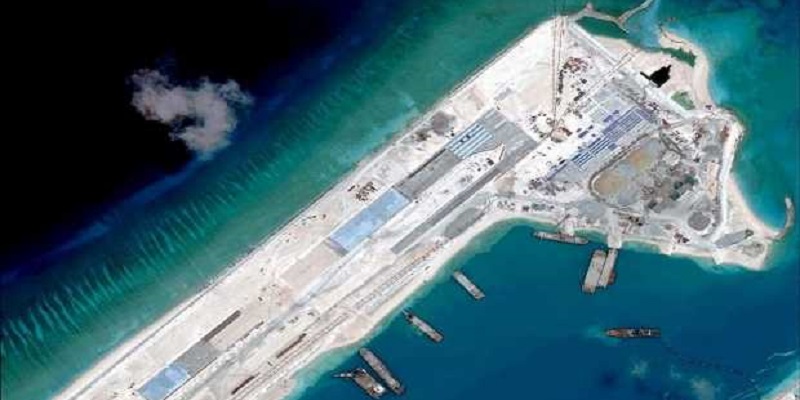 Sejauh ini, China menempati tujuh situs di Kepulauan Spratly. Beijing juga terlibat dalam kegiatan pembangunan pulau dan fasilitas konstruksi di sebagian besar atau semua situs ini, dan khususnya di tiga dari mereka, yaitu Fiery Cross Reef, Subi Reef, dan Mischief Reef, yang semuanya sekarang memiliki landasan terbang serta sejumlah besar bangunan dan struktur lainnya.
