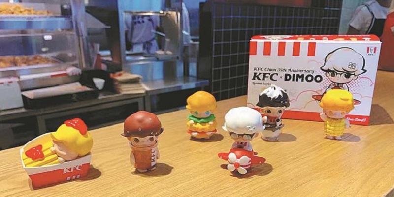 Menggandeng pengecer mainan Pop Mart International Group, KFC membuat promo untuk memperingati 35 tahun makanan cepat saji itu tiba di China. Poster promo tersebut juga disebar di media sosial China, Weibo.