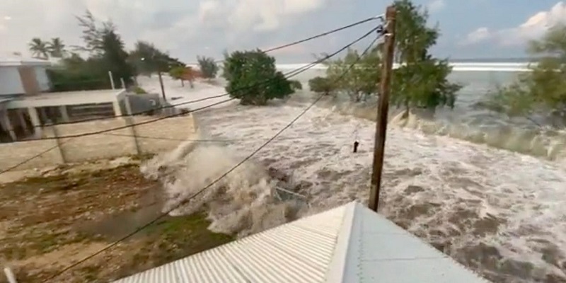 Di media sosial, beredar rekaman video air laut yang menyapu rumah, properti, hingga gereja di Tonga. Video lain memperlihatkan orang-orang berusaha melarikan diri ke tempat yang lebih tinggi, diiringi suara teriakan panik.