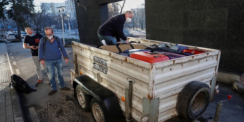 Kedutaan AS dan Kanada telah mengirim staf dan anggota keluarga yang tidak penting ke rumah dan mengevakuasi yang lain ke kota Lviv, Ukraina barat. Pelatih militer Amerika, Kanada dan Inggris di negara itu juga telah ditarik.