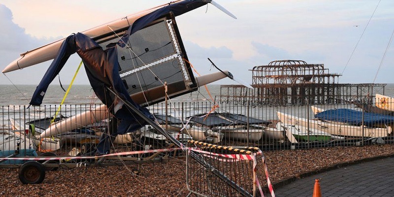 Salah satu badai terburuk dalam beberapa dekade yang melanda Inggris itu telah memecahkan rekor dengan membawa angin kencang berkecepatan 196 kilometer per jam yang tercatat di Isle of Wight.