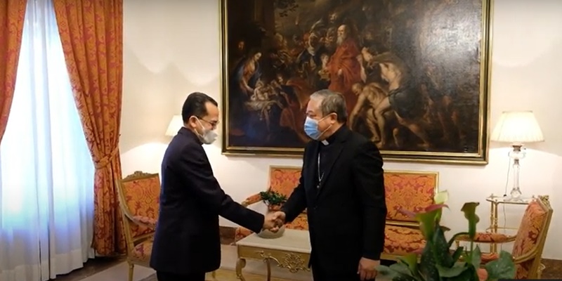 Dalam siaran YouTube pada saluran Wisma Duta RI Madrid, Dubes Indonesia Muhammad Najib melakukan kunjungan ke kediaman Dubes Vatikan Bernardito Cleopas Auza. Dubes Najib disambut dengan jabatan hangat, dan dalam hitungan menit, keduanya telah terlibat dalam percakapan yang mengalir penuh keakraban.