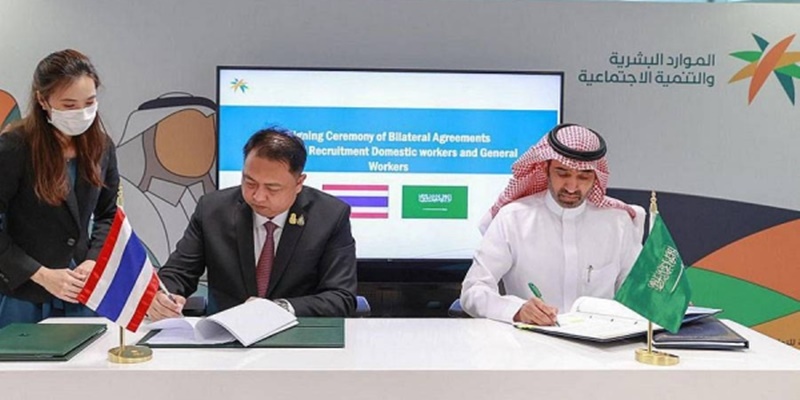 Pada Senin (28/3), Menteri Tenaga Kerja Suchart Chomklin berada di Riyadh untuk bertemu dengan Menteri Sumber Daya Manusia dan Pembangunan Sosial (HRSD) Ahmad Sulaiman Al Rajhi. Kedua menteri sepakat menandatangani nota kesepahaman (MoU) tentang ekspor tenaga kerja Thailand yang akan menjamin kondisi yang baik bagi pekerja di negara Teluk.