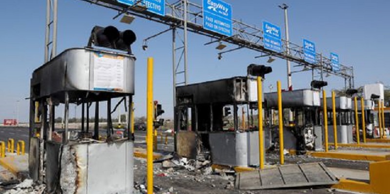 Warga Peru melakukan aksi unjuk rasa di dekat kota selatan Ica, dengan membakar gerbang tol dan bentrok dengan polisi pada Senin (4/4).