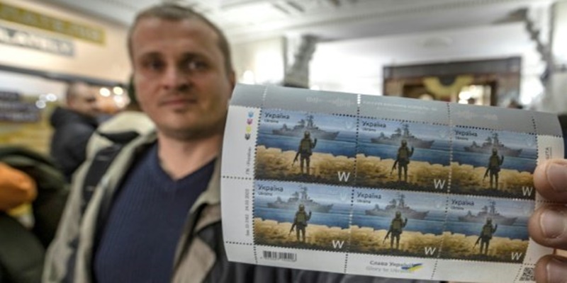 Perangko itu bergambar seorang tentara Ukraina yang berdiri mengacungkan jarinya, membuat gerakan tangan yang tidak senonoh ke arah kapal Moskva di depannya di Laut Hitam Rusia. Perangko itu menjadi barang koleksi bagi orang Ukraina yang melihatnya sebagai tanda "kemenangan".