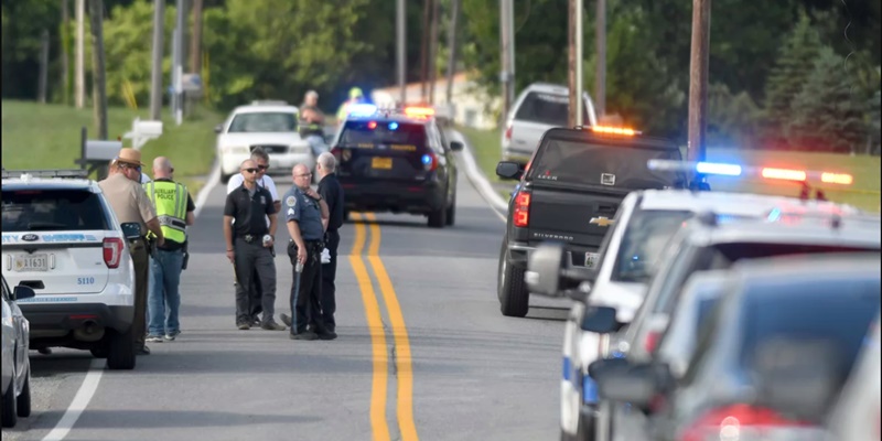Foto-foto berita menunjukkan sejumlah besar anggota penegak hukum, termasuk kendaraan darurat di tempat kejadian.