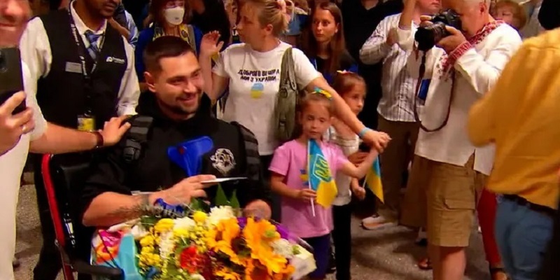 Sesampainya di Bandara Internasional Paul, mereka disambut hangat oleh puluhan warga Ukraina-Amerika dan warga lainnya.