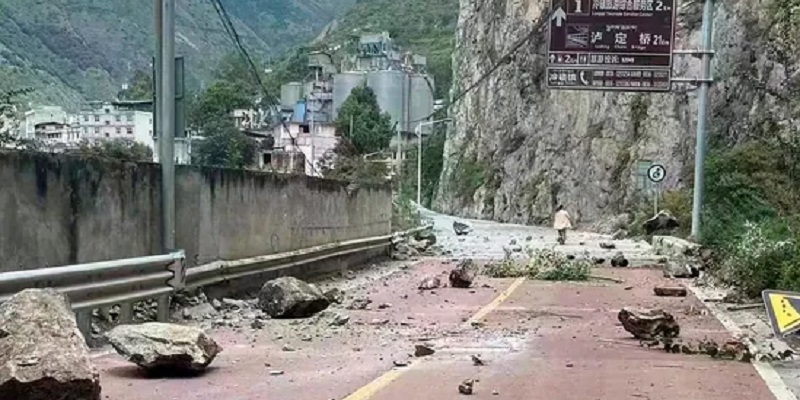 Reruntuhan akibat gempa 6,6 magnitudo yang mengguncang Provinsi Sichuan, China pada 5 September 2022/Net