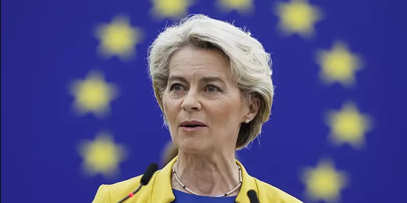 "Hari ini, keberanian memiliki nama, dan nama itu adalah Ukraina," katanya, yang disambut dengan tepuk tangan dari ibu negara Ukraina, Olena Zelenska, yang hadir sebagai tamu kehormatannya. Anggota parlemen yang hadir juga memberikan seruan semangat kepada Von der Leyen