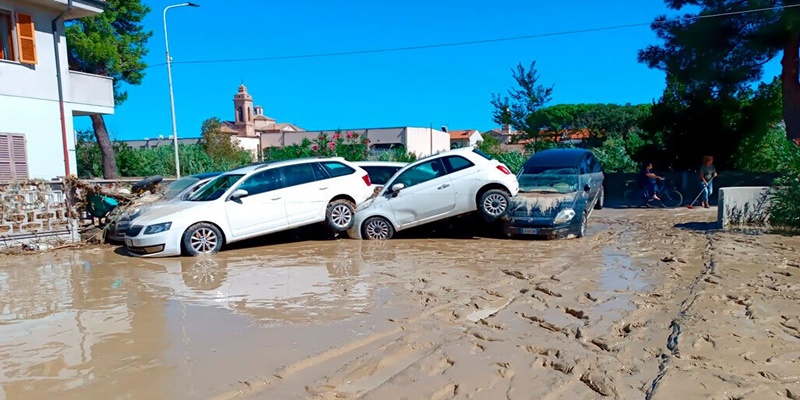Banjir mematikan yang terjadi pada Jumat membentang di wilayah Marche dari perbukitan pedalaman ke pantai Adriatik dan menghancurkan kota Sassoferrato dan Senigallia. Kota-kota kecil lainnya di perbukitan dekat kota wisata Renaisans Urbino juga terkena banjir yang membawa lumpur dan puing-puing.