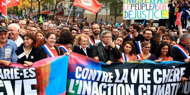 Aksi protes dikomandoi oleh pemimpin partai oposisi sayap kiri Prancis La France Insoumise (France Unbowed), Jean-Luc Melenchon dan pemimpin New Ecologic and Social People's Union (NUPES) pada Minggu (16/10).