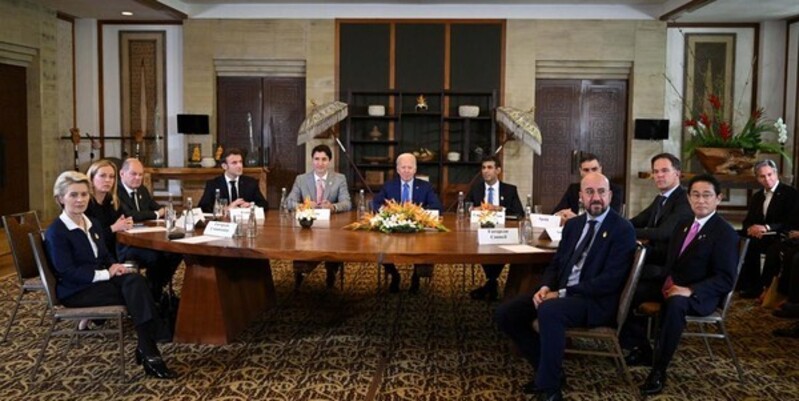 Rapat tersebut dihadiri secara langsung oleh Presiden AS Joe Biden, PM Inggris Rishi Sunak, PM Kanada Justin Trudeau, Kanselir Jerman Olaf Scholz, Presiden Prancis Emmanuel Macron, PM Italia Giorgia Meloni, PM Jepang Kishida Fumio, Presiden Komisi Eropa Ursula von der Leyen, Presiden Dewan Eropa Charles Michel, PM Spanyol Pedro Sanchez, PM Belanda Mark Rutte, dan Menteri Luar Negeri AS Antony Blinken.
