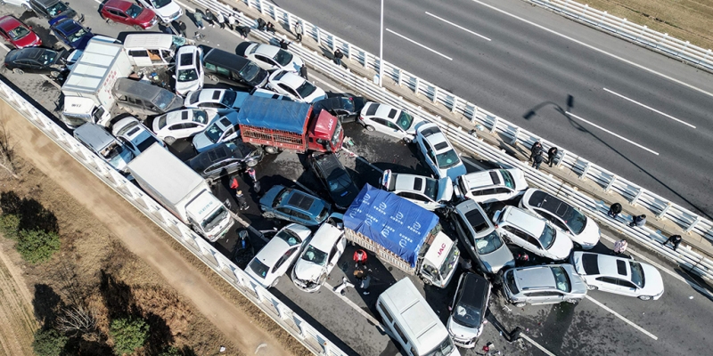 Menurut laporan dari badan meteorologi, visibilitas yang rendah akibat kabut tebal dan permukaan jalan yang tertutup es diduga menjadi penyebab utama dari kecelakaan yang melibatkan ratusan kendaraan ini.