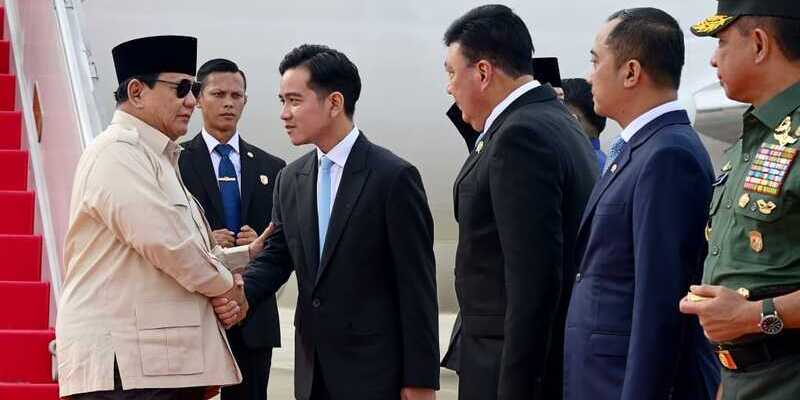 Menurut laporan Sekretariat Presiden RI, kedatangan Prabowo di Pangkalan TNI AU Halim Perdanakusuma, Jakarta disambut oleh Wakil Presiden Gibran Rakabuming.