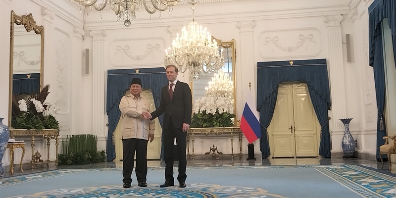 Tak berapa lama Prabowo tampak memasuki ruang Kresidensial bersama Manturov. Keduanya mengambil foto bersama, berpose dengan saling berjabat tangan.