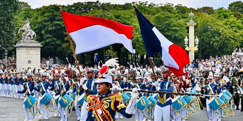 France 24 mencatat bahwa lebih dari 450 personel Indonesia turut serta dalam parade, dengan kehormatan membuka jalannya upacara setelah atraksi udara dari Patrouille de France.