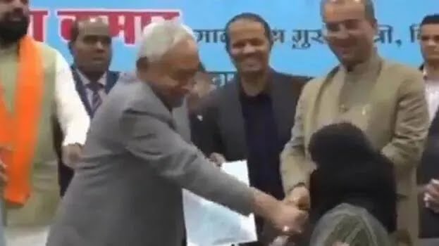 Kumar secara tiba-tiba menarik jilbab dokter AYUSH, Nusrat Parveen di atas panggung. Lantas, sejumlah pejabat di sekitarnya tampak berusaha ragu menghentikannya. Sementara, sebagian lainnya justru tertawa.