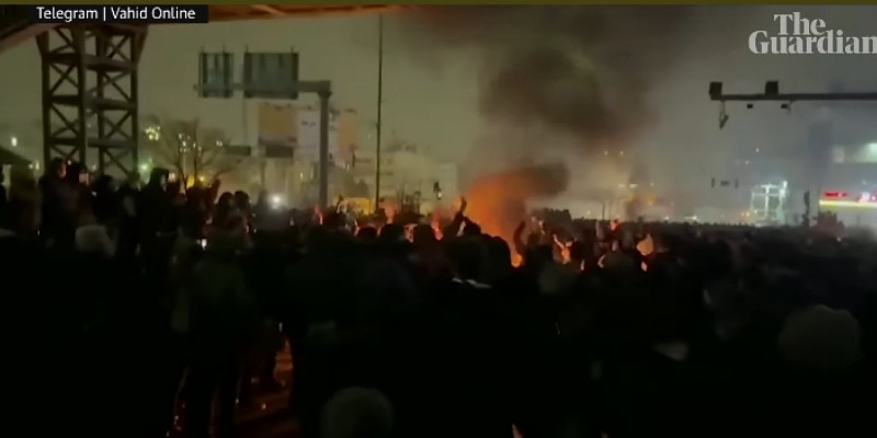 Di dalam negeri Iran, protes terus berlanjut di sejumlah kota, termasuk Teheran dan Mashhad. Video yang beredar - diduga dikirim menggunakan jaringan satelit - menunjukkan massa berkumpul, menghadapi aparat keamanan, serta kehadiran drone pengawas di atas lokasi unjuk rasa.