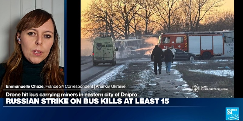 Polisi setempat menyatakan serangan itu terjadi di kota Terenivka. Rekaman yang dirilis Layanan Darurat Negara Ukraina memperlihatkan sebuah bus hangus terbakar, dengan jendela pecah dan keluar dari jalur jalan.