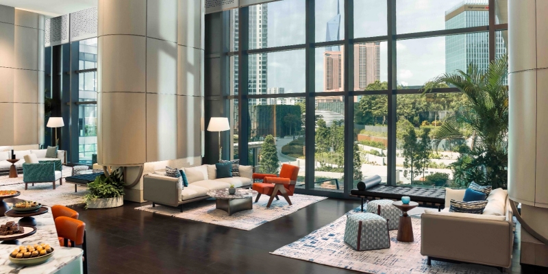 Terletak tepat di atas mal The Exchange TRX, hotel ini menawarkan 466 kamar dan suite yang tersebar di 26 lantai. Dari sisi akomodasi, tamu dapat menikmati pemandangan panorama kota yang ikonik, mulai dari gedung Merdeka 118 hingga Menara KL. Detail interior kamar pun dibuat menonjol dengan seni abstrak bertema hutan hujan serta instalasi kamar mandi berlapis emas.